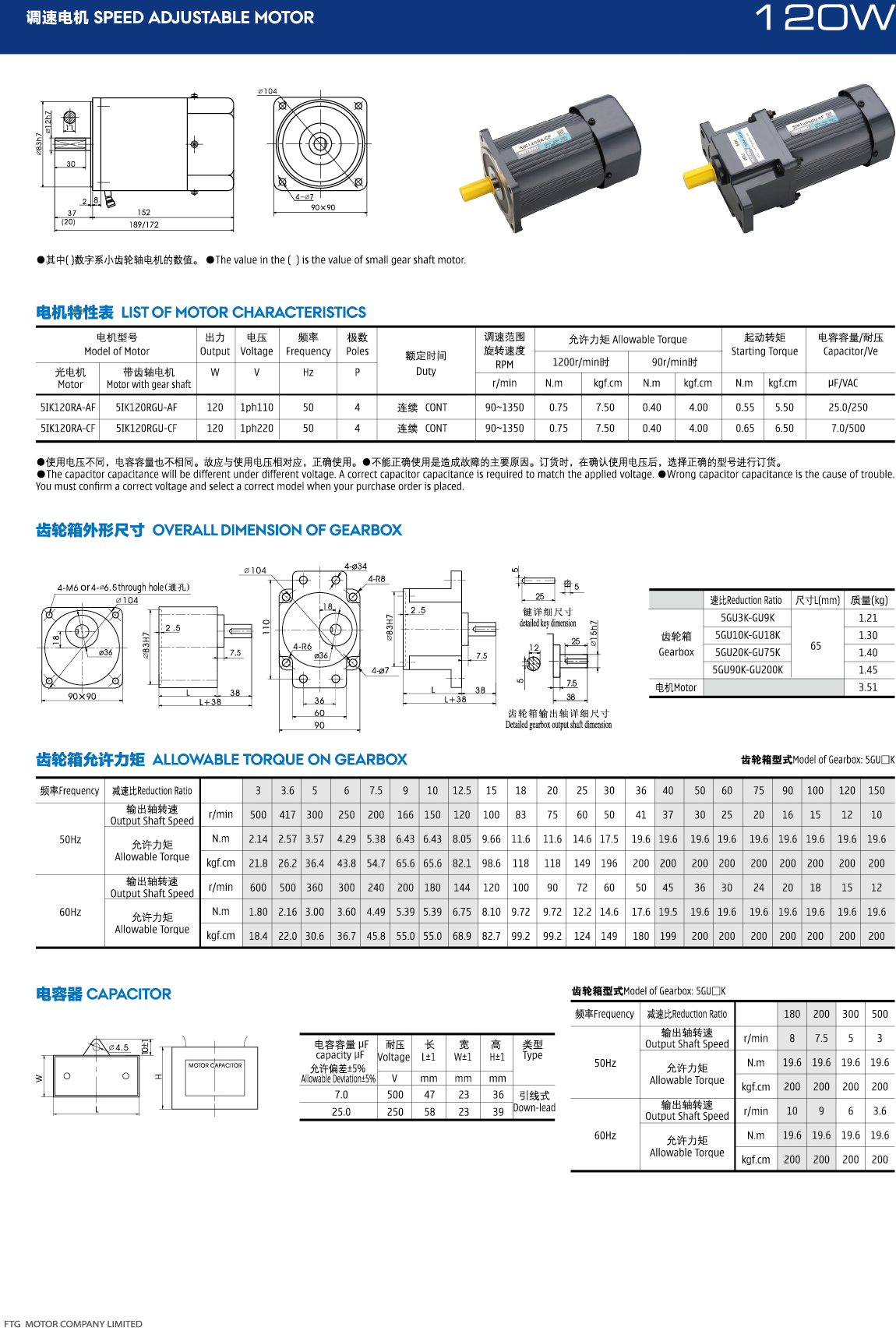 电机型号:5IK120RGU-CF/5GU-60K
