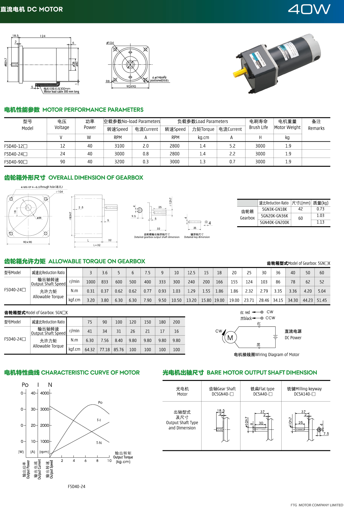 订购:直流减速电机F5D40-24GN-30S/5GN-20K