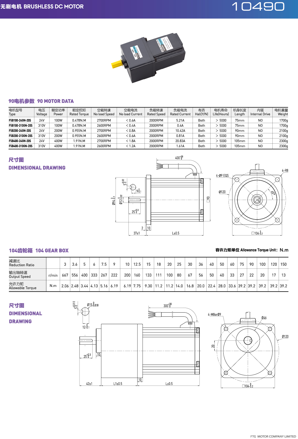 无刷减速电机F6BC400-310GU-20S/6GU-200K